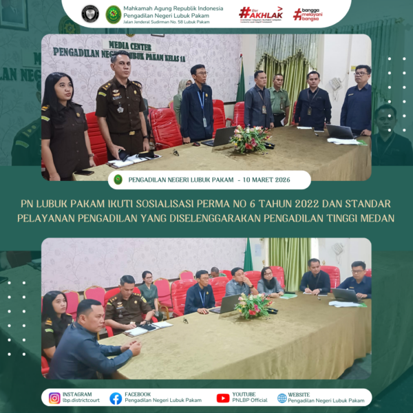 Melalui kegiatan ini, Pengadilan Negeri Lubuk Pakam terus berkomitmen menjaga profesionalitas, integritas, dan ketelitian dalam menjalankan tugas dan tanggung jawab di lingkungan peradilan. Suasana apel yang berlangsung dengan tertib dan khidmat mencerminkan semangat kebersamaan serta dedikasi seluruh aparatur dalam mempertahankan budaya kerja yang akuntabel dan berorientasi pada pelayanan terbaik bagi masyarakat.