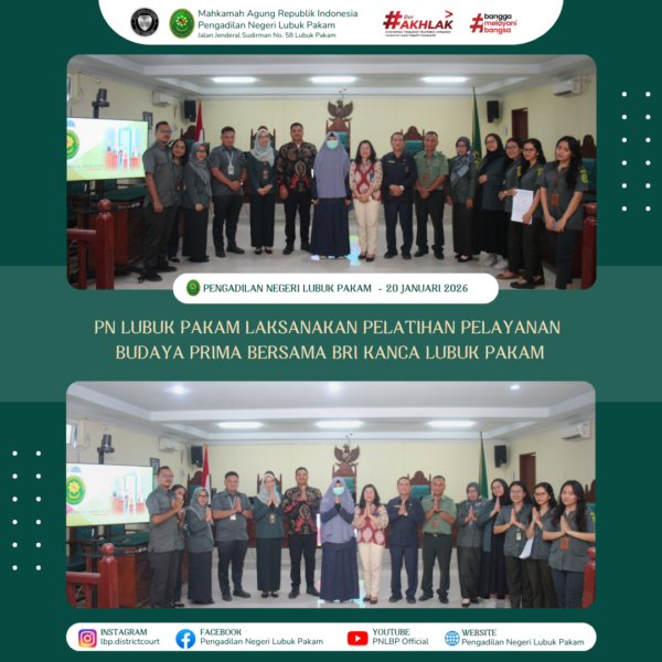 In Artikel Terkini Comment off PN Lubuk Pakam Laksanakan Pelatihan Pelayanan Prima PTSP Bersama BRI Kanca Lubuk Pakam